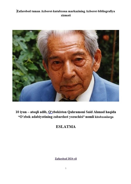 So’z boshi. Said Ahmad – Saidahmad Husanxo‘jayev, o‘zbek adabiyotining atoqli adiblaridan biridir.