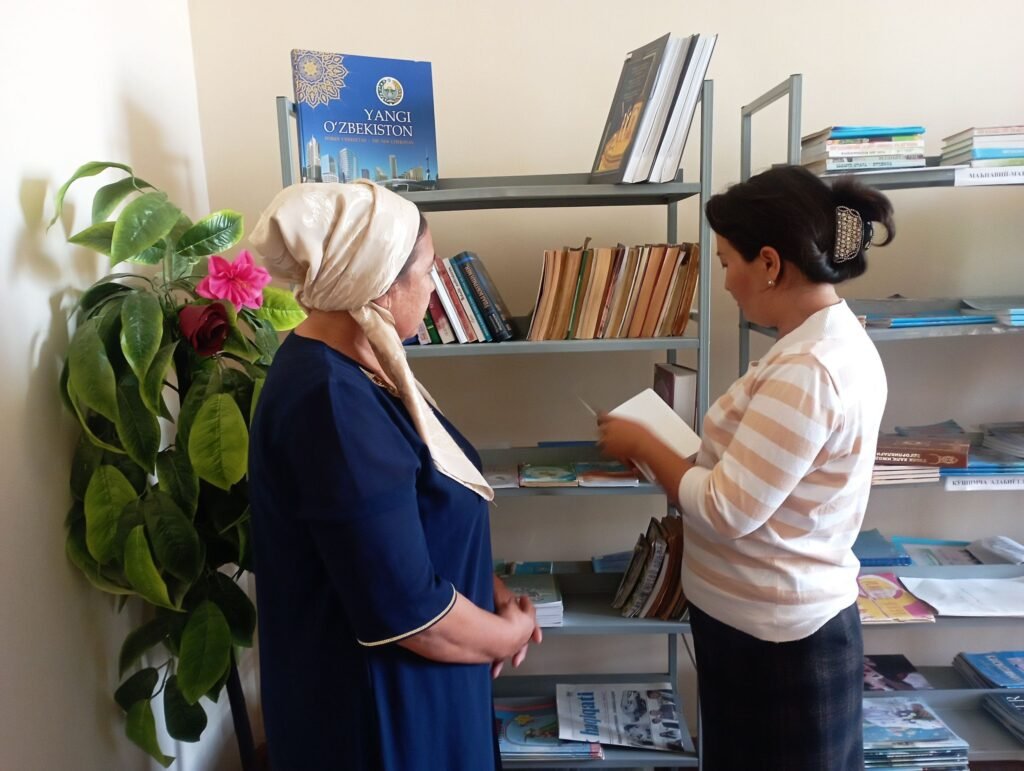 Arnasoy tuman axborot-kutubxona markazi xodimi M.Tojiyeva Arnasoy tuman Oltin vodiy MFYda istiqomat qiluvchi B.Xojiyev xonadonida tashkil etilgan mo’jazgina kutubxona bilan