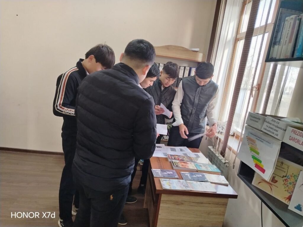 Joriy yilning 19-dekabr kuni Arnasoy tumani axborot-kutubxona markazi bibliografiya xizmati mutaxassisi tomonidan kutubxonamizga kelgan yangi badiiy adabiyotlar haqida obzor tashkil